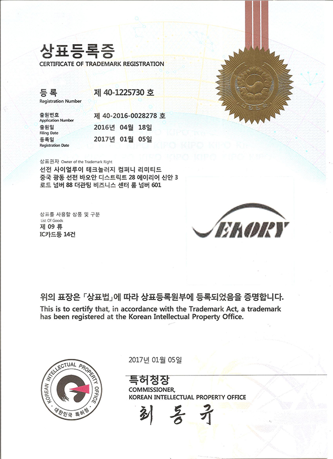 Congratulation! SEAORY trademark has been registered at the Korean Intellectual Property Office successfully in 2017.