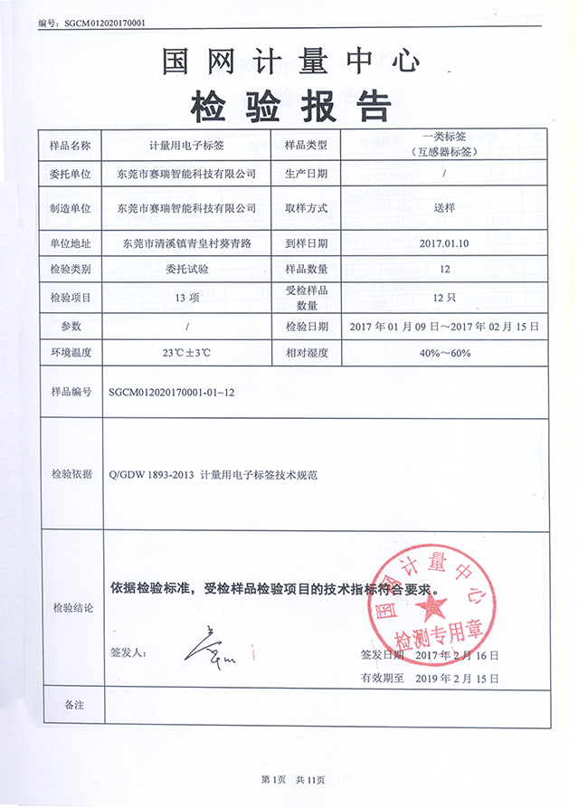 State Grid Center of Measurement (SGCM) is the highest measuring technique institute of State Grid Corporation of China (SGCC). Seaory RFID tags have passed SGCM test. The testing samples meet the technical requirement. This signals that Seaory products can apply in the State Grid system.