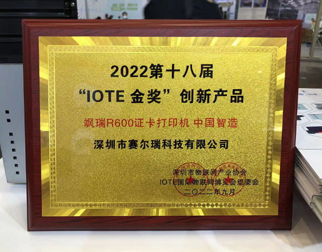 Grâce à ses performances exceptionnelles et à l'utilisation de plusieurs technologies brevetées, l'imprimante de cartes R600 Desktop Retransfer Dual-sided Printer développée par Seaory a reçu le "IOTE Gold Award" du produit innovant lors de la 18ème édition de l'IOTE 2022, ce qui a été pleinement approuvé par l'industrie.