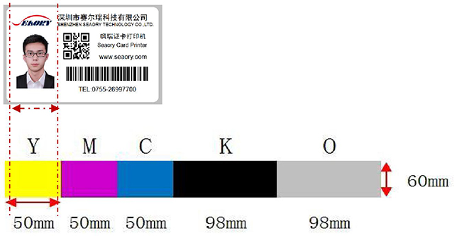 Note: Seaory S series 1/2ymcKO ribbon allow you can print color on up to 35mm of a standard CR80 size PVC card, and resin black may be printed on any area of the card.