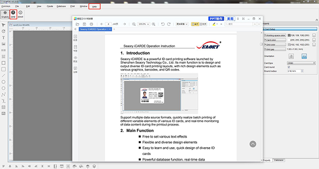 If we want to quickly learn about the operation of this easy-to-use iCARDE software, users could seek for the "Help" button, click it and there will automatically open a PDF document manual, follow the instructions inside to quickly master the software.